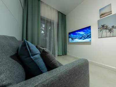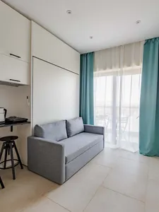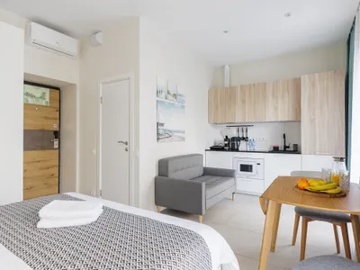 Современный ремонт, красиво, уютно. В номере есть холодильник, микроволновка, переносная плита, капсульная кофемашина. Можно заказать завтрак в номер. Красивая зелёная территория. Рядом платная парковка. Есть свой частный пляж с лежаками.