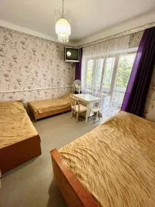 Прекрасная хозяйка, всегда на связи, жильё комфортное и уютное, детям понравилось. Магазин в шаговой доступности, море тоже. Душ и туалет личные, на кухне всё есть, спальные места удобные. Отдельный вход, кондиционер и интернет есть. Всё работает. Телевизор с ютубом. Всё очень понравилось!
