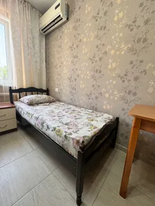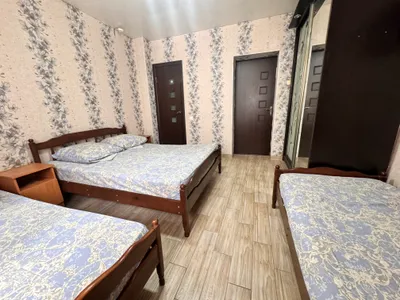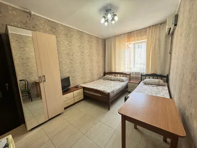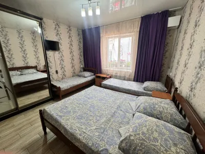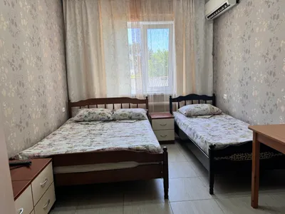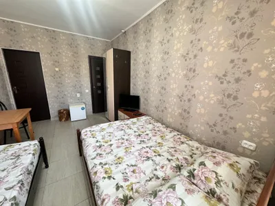 В трехместном номере вы найдете уютную двуспальную кровать, односпальную кровать, санузел, кондиционер, телевизор, шкаф и тумбочку. А в четырехместном номере вас ждут две двуспальные кровати, две односпальные кровати, санузел, кондиционер, телевизор, шкаф и тумбочка.