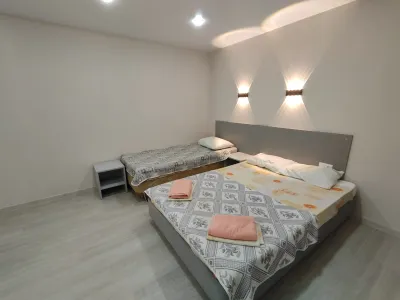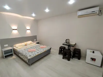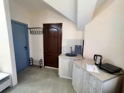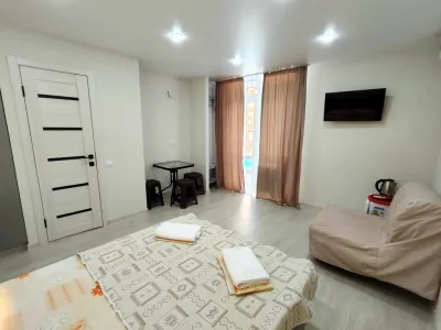 Работники всегда на связи! Заселили ранее заявленного времени, очень быстро, без какого либо ожидания. В номере чисто и все соответствует фото. На территории есть бассейн и мангальная зона. До моря недалеко. Рядом все, что нужно для проживания.