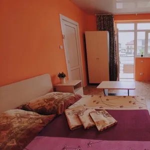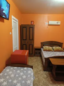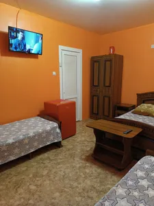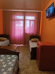Наш уютный дом встречает гостей просторными… комнатами со всеми удобствами и отдельными санузлами. В каждой комнате кондиционер, просторный холодильник, современный телевизор, электрический чайник, новая мебель и постельные принадлежности.