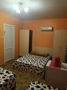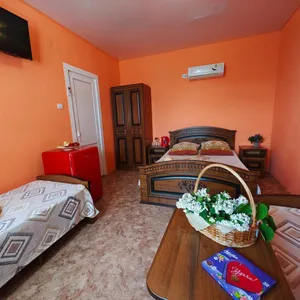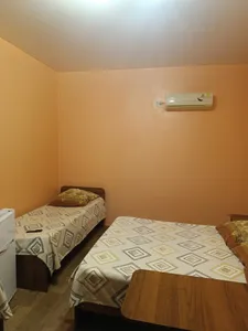 Номер просторный светлый в наличие холодильник, телевизор, кондиционер, чайник, просторный душ с горячей водой. По вечерам и ночью тихо - нет рядом шумных заведений.. Чистота идеальная. Большая дворовая территория есть для детей песочница батут и качели. Большая светлая кухня на улице совсеми необходимыми принадлежностями для приготовления еды самостоятельно. Добродушные хозяева всё великолепно. Рекомендую!