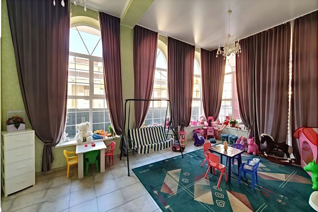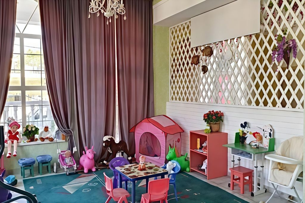 На территории: Бар, столовая, бассейн для взрослых и детей, зона для загара, детская площадка на открытом воздухе, а также детская игровая комната в помещении.