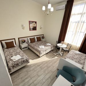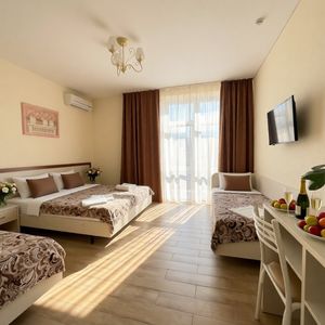 Мы отдыхали в Джемете в отеле «Барвиха» – и это было одно из самых удачных мест для отдыха! 🌿 Первое, что хочется отметить – невероятно удобные матрасы. Наконец-то удалось реально выспаться в отпуске, что бывает крайне редко! 😍 Территория закрытая, уютная и безопасная, а дети просто не вылазили из бассейна – удовольствие для них и спокойствие для родителей. В номере есть всё необходимое: фен, посуда, кондиционер – чувствовали себя как дома. Очень порадовало отношение хозяев – всегда приветливые, готовы помочь с любым вопросом. До моря всего 7 минут пешком, а по пути – множество магазинчиков, где можно купить всё, что нужно. Отдых получился комфортным и по-настоящему расслабляющим. Обязательно приедем ещё раз! 🌊✨