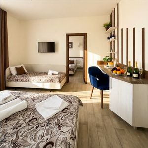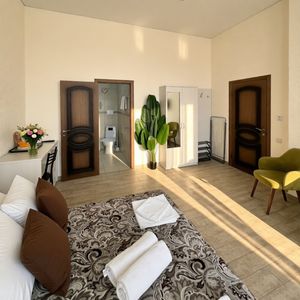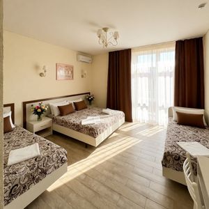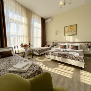 Все номера: повышенной комфортности для уютного проживания, различные категории вместимостью от 2х до 5 чел., от 1 ком-х до 2х ком-х. номеров с балконом, а также с собственной террасой.