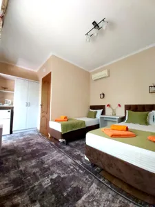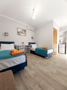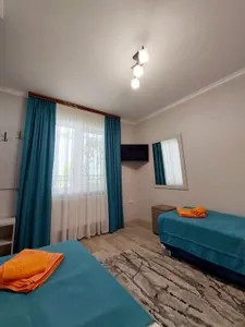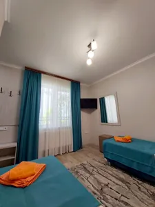 В 7 мин. расположен рынок, сеть магазинов, удобная транспортная развязка, кафе, столовые. В гостевом доме уютный весь в зелени двор, альпийская горка с водопадом, мангал, два велосипеда напрокат (бесплатно), бассейн 5.5 х 3 м. - все для вашего комфортного отдыха.