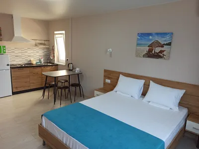 Номер в реальности полностью соответствует, как на фото. Свежая отделка интерьера. Всё очень аккуратно и чисто. Гостиница располагается в тихом квартале. И в то же время практически в центре всех развлекательных мероприятий, которые вам могут понадобиться во время отдыха. Парки, аттракционы, продуктовые магазины, аллеи кафе и ресторанов всё в шаговой доступности (пешком 10-15 мин). Гостеприимность хозяев, приятно удивляет. Вера и Андрей - добрые, отзывчивые люди. Огромное им спасибо. Если когда либо мои путешествия будут связаны с Анапой, бронировать номер буду только здесь.