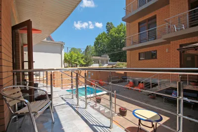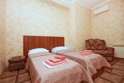 2-а корпуса, комфортабельные номера, столовая, уютный внутренний дворик со столиками и навесами, детская горка, открытый бассейн, wi-fi. Территория находится под видеонаблюдением. Анимация для детей 1 раз в 10 дней