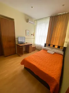 Для меня - идеальный вариант расположения относительно пляжа, набережной, магазинов и т.д. Песок, как и центральный пляж - не люблю, не посещаю (для любителей - маршрутка, такси в помощь). В прошлом году была, понравилось. Не прощаюсь, планирую стать постоянным клиентом.