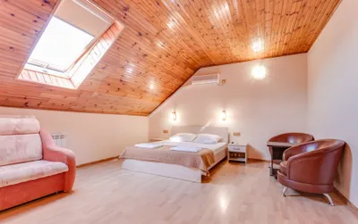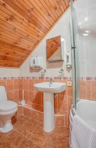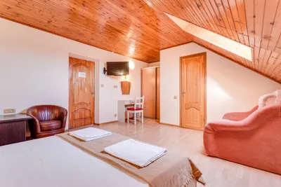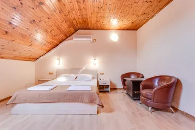 Гостевой дом представляет из себя два отдельно стоящих корпуса, расположенных в 100 метрах друг от друга. В первом