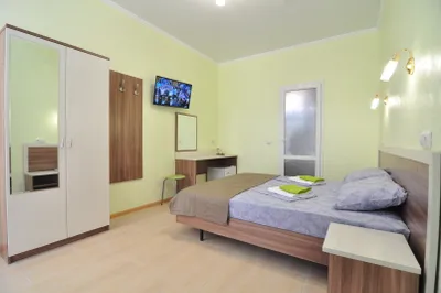 Очень чисто, бассейн тёплый, есть практически все для комфортного отдыха, но не хватает эл.чайника в номере или хотят быть кулера на этаже и хотелось бы гель для душа, и шампунь. С собой то возим, но привыкли что везде всегда есть. Во дворе есть кухонная зона, столики, шезлонги. Рядом продуктовый магазин, столовая, до моря далековато, хоть сейчас море и не актуально, до города тоже далеко, на машине минут 25. В целом, хорошо, номер просторный, даже лучше, чем мы бронировали, хозяин постоянно на связи.