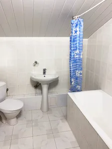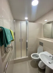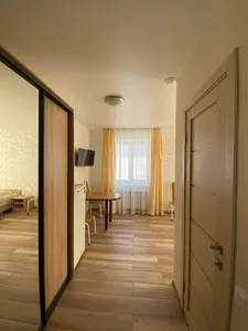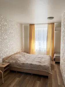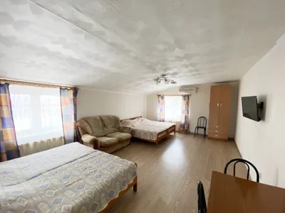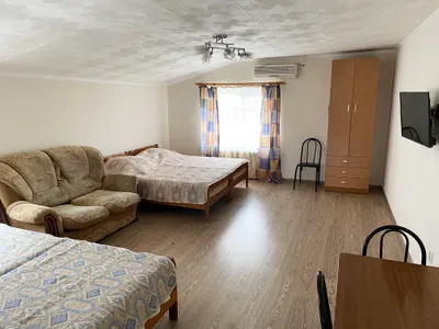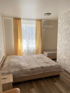 Быстрое бронирование с приложения. Номер уютный, всё везде чисто и аккуратно. В номере холодильник, кондиционер, чайник, телевизор и санузел. На входе в гостевой дом есть уютная и вкусная столовая. Спасибо нам понравилось.