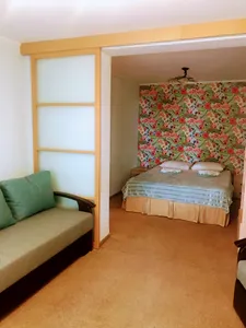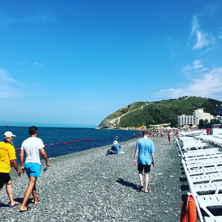 Уютный номер на берегу моря. Есть разные варианты размещения (другие номера), со своими кухнями или с общей, как у нас. Приветливые хозяева. Вход на территорию через корпуса детского лагеря Смена, по пропускам. Спиртное проносить нельзя))) Не смотря на то, что это небольшое село, есть много мест для развлечений с детьми: прогулки на лошадях, квадроциклы, кипарисовое озеро, африканская деревня, рыцарский замок. Купание на море разрешено, пляж открыт! Берег в гальке - лучше купить специальные тапки, мягкие матрасики для загорания. Все продается по пути на пляж. Есть на берегу и лежаки по 500р. Большие лежанки по 4000-6000 тысяч за сутки. Катание на катамаранах, водных мотоциклах, бананы, горки.