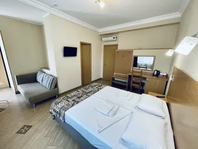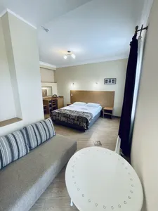 Отличный отель. Просторный номер с собственной террасой. Чисто. Удобная кровать. Общительная хозяйка. Есть парковка куда можно поставить машину. В шаговой доступности магазины, кафе и городской пляж. Единственный нюанс - пешком подниматься к отелю в небольшую горку. Нам было нормально, возможно кому то надо учитывать данный факт.